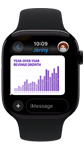 A spreadsheet and text message displayed on a suite of devices, including Apple Watch, iPhone, Mac and iPad.