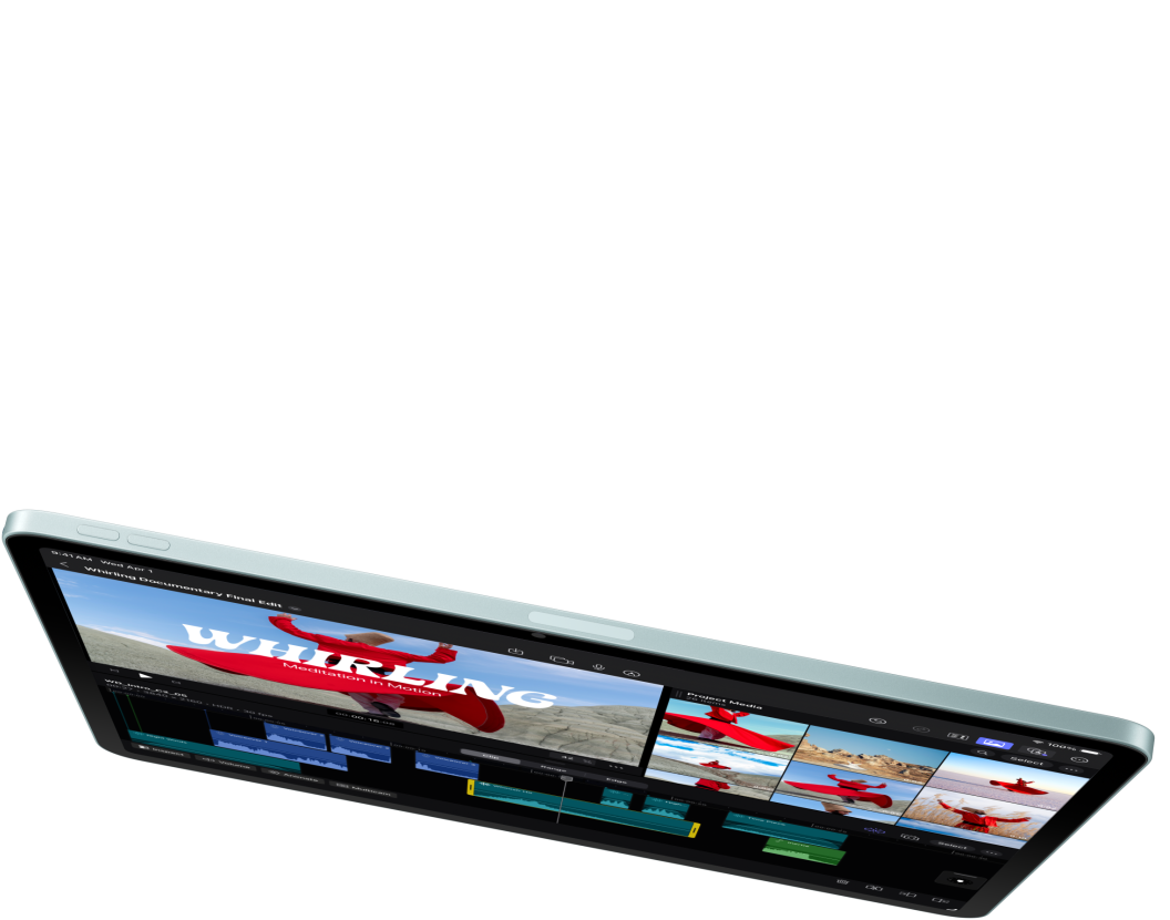 iPad Air en mode paysage, mettant en avant le montage vidéo dans Final Cut Pro