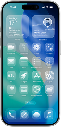 El Liquid Glass trae un nuevo y expresivo diseño con las cualidades ópticas del vidrio que da más fluidez a la pantalla de inicio, la pantalla bloqueada, el Centro de Control, las apps y más.