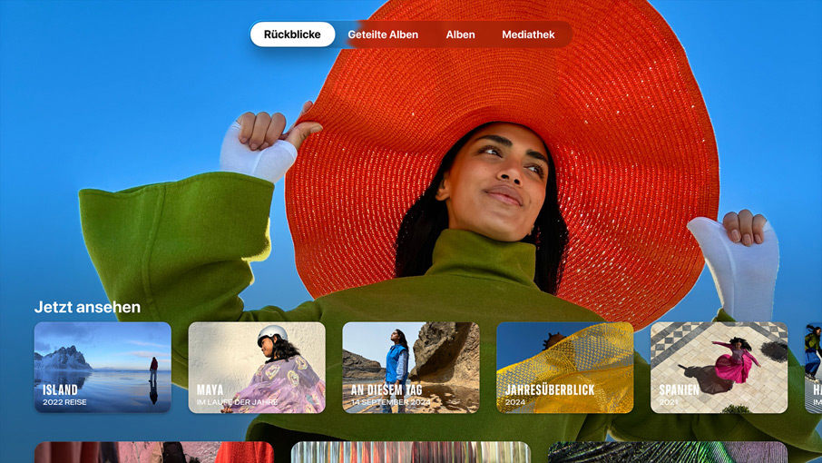 Fotos. Eine geteilte iCloud Fotomediathek macht es der ganzen Familie jetzt so leicht wie noch nie, Fotos miteinander zu teilen und direkt auf dem Fernseher anzusehen. Außerdem kannst du Rückblicke als Bildschirmschoner auswählen – und erleben, wie deine besonderen Momente auf dem großen Bildschirm lebendig werden.