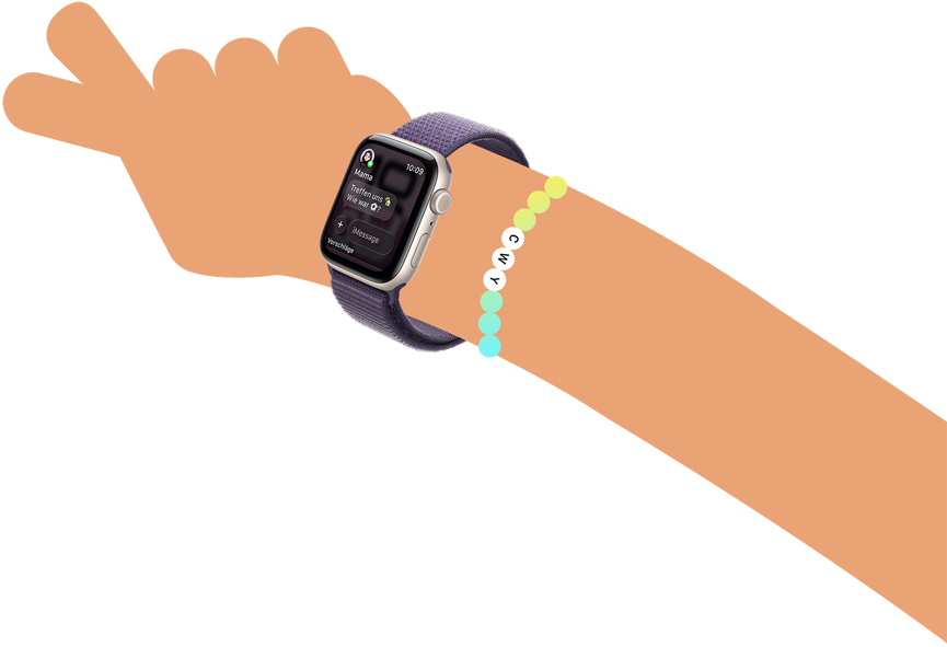 Texte mit einem Tippen, Swipen oder der Diktierfunktion in der Nachrichten App. Und wenn du personalisierte Hintergründe zu deinen Chats auf dem iPhone hinzufügst, siehst du sie auch auf der Apple Watch – so werden eure Gruppenchats noch persönlicher.