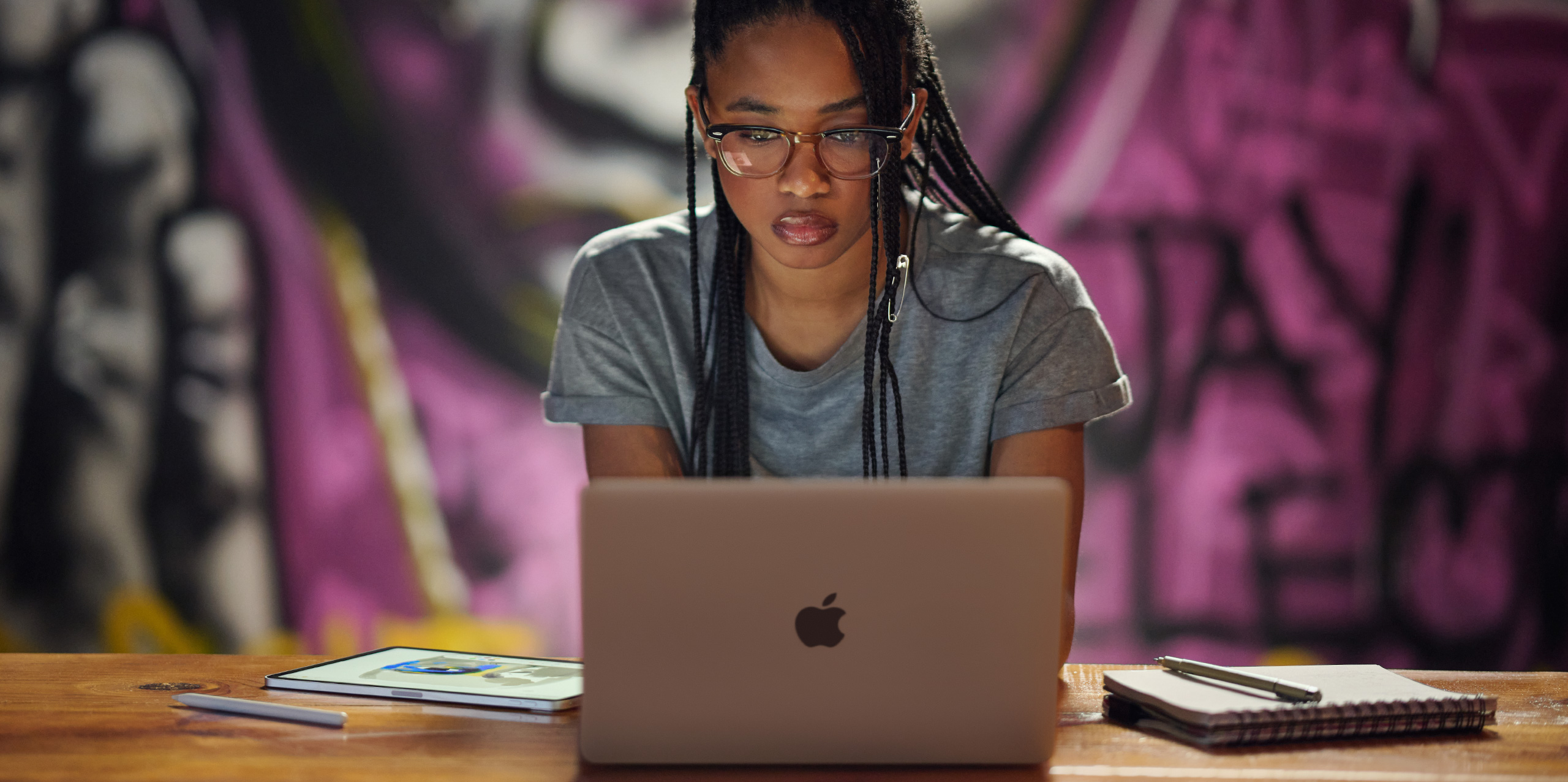 She’s interviewed a famous physicist, a renowned filmmaker, and prominent artists on iPhone. She pulls the video into her Mac, edits with Adobe Premiere and designs audio with Logic Pro. “Mac has transformed my storytelling capabilities by becoming a conduit for editing sequences, sound design, and mixing and producing beats.”