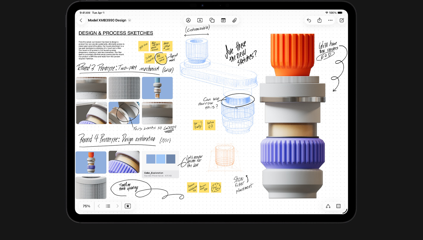 M5 kiip avardab iPad Pro võimaluste piire, pakkudes enneolematut jõudlust ja tõhusust. Järgmise põlvkonna 10-tuumaline graafikaprotsessor võimsate uute neuraalkiirenditega kiirendab märkimisväärselt tehisintellekti tööd, alates suurte keelemudelite tokenite loomisest kuni genereeritud piltideni. Ja tänu mitmelõimelise protsessori jõudlusele ja kiiremale mälule pole su töö olnud kunagi nii efektiivne.