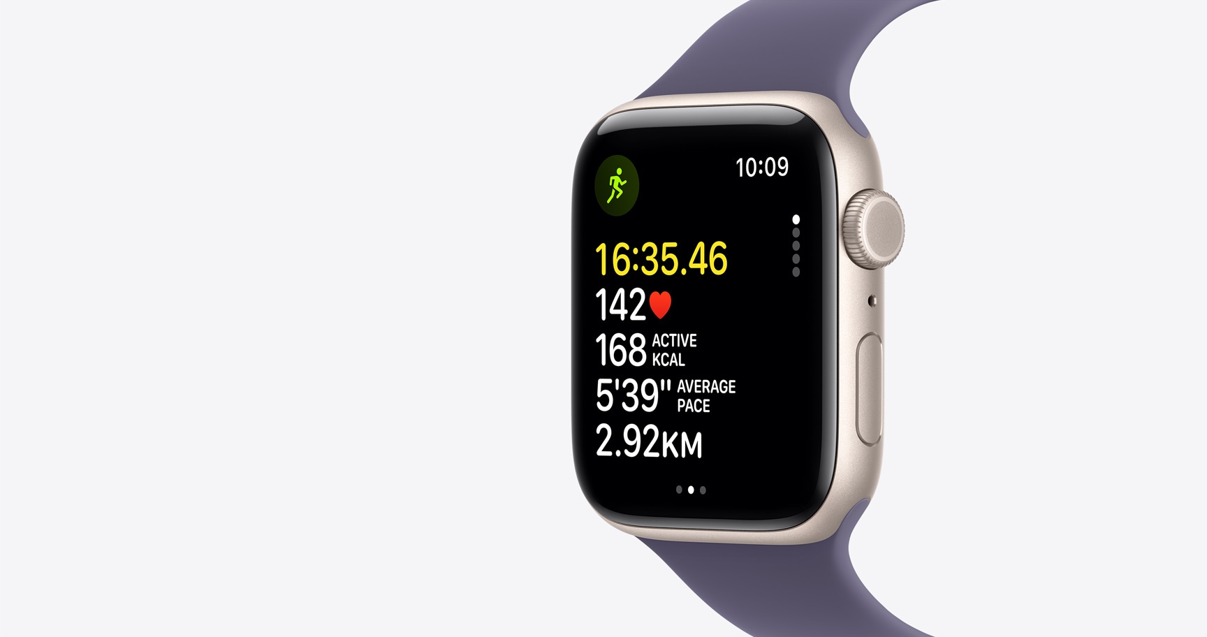 Apple Watch SE 3 tvoj je savršeni partner za trčanje. Ugrađeni GPS i napredni senzori mogu ti pomoći da pratiš prijeđeni put, tempo i puls — i pružaju sve potrebne pokazatelje za ispunjavanje kondicijskih ciljeva.