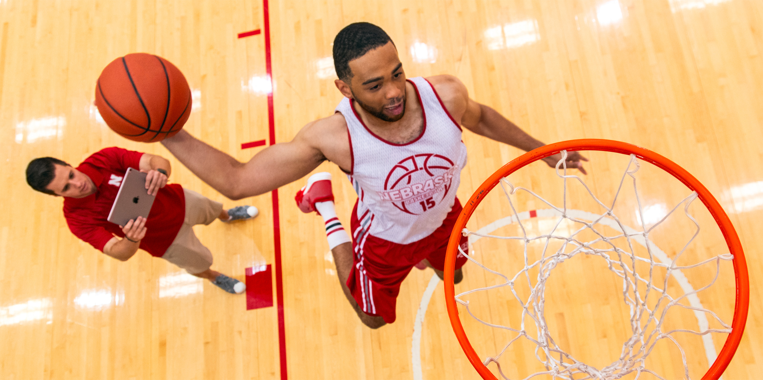 Para pelatih di Nebraska menggunakan iPad untuk merencanakan pertandingan dan latihan, berkomunikasi dengan tim, dan memantau metrik performa mahasiswa-atlet menggunakan aplikasi iOS khusus. Mereka bahkan menggunakan iPad untuk membantu mencari dan merekrut mahasiswa-atlet dari seluruh penjuru negeri.