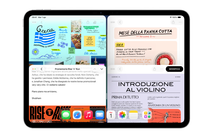 Per spostare le finestre a sinistra o a destra ti basta un semplice gesto. E ora puoi anche dividere lo schermo del tuo iPad in tre o in quattro parti.