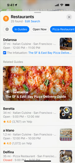 • Curated Guides are lists of places created by trusted partners to help you find great places to eat, shop, meet friends, or just explore. Maps offers more than 1000 curated Guides in cities around the world. In iOS 15, tap Explore Guides in Maps to see Guides recommended by Maps editors.