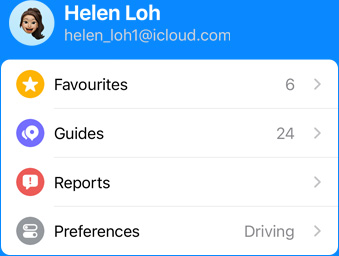 Open Maps and tap your user account photo at the bottom of the screen to see your most used settings — like preferred mode of public transport, reported issues and favourites — all in one place. And when you open Maps on your devices or on your dashboard with CarPlay, it displays the places you visit most — so you’re always just a tap away from home, work, the gym, your kid’s school, the nearest petrol station or your favourite restaurant.