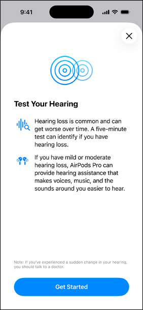 Trykk på skjermen når du hører lyden. Hørselstesten, kjent som rentoneaudiometri, er basert på avansert lydvitenskap og spiller av en serie med toner du reagerer på ved å trykke på skjermen. Nyttige animasjoner, tapback-effekter og fremdriftsindikatorer veileder deg gjennom prosessen, som tar cirka fem minutter. Den nøyaktige, raske og enkle Hørselstest-funksjonen er utviklet ved hjelp av over 150 000 ekte audiogrammer og millioner av simulasjoner.