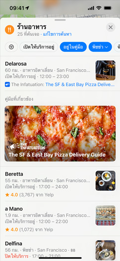 "สถานที่น่าสนใจที่ คัดสรรมาอย่างดี" คือ รายชื่อ สถานที่ที่จัดทำขึ้นโดย พันธมิตร ที่เชื่อถือได้ เพื่อช่วย ให้คุณ ได้ค้นพบ สถานที่ดีๆ สำหรับการกิน ช้อปปิ้ง พบปะเพื่อนฝูง หรือเพียงเพื่อ การสำรวจ แอปแผนที่ มีสถานที่ น่าสนใจ ที่คัดสรร มาอย่างดี กว่า 1,000 รายการ ในเมืองต่างๆ ทั่วโลก แตะ "สำรวจ สถานที่ น่าสนใจ" บนแอปแผนที่ใน iOS 15 เพื่อดู สถานที่น่าสนใจที่แนะนำโดยบรรณาธิการ แอปแผนที่ -